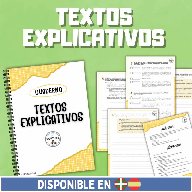 Koaderno hau azalpen-testuak modu argi eta egituratuan lantzeko eta irakasteko diseinatuta dago. Guztira 20 orrialde ditu, hainbat ataletan antolatuta: